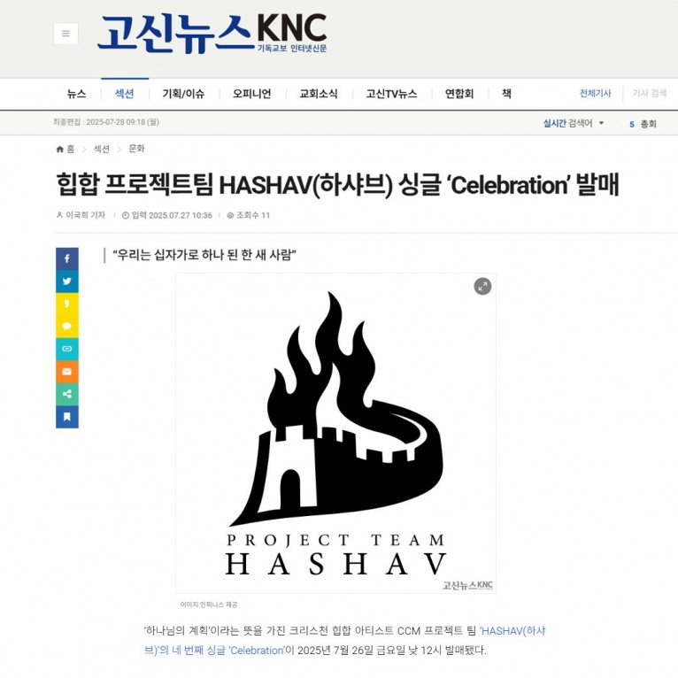 ‘하나님의 계획’이라는 뜻을 가진 크리스천 힙합 아티스트 CCM 프로젝트 팀 ‘HASHAV(하샤브)’의 네 번째 싱글 ‘Celebration’이 2025년 7월 26일 금요일 낮 12시 발매됐다.