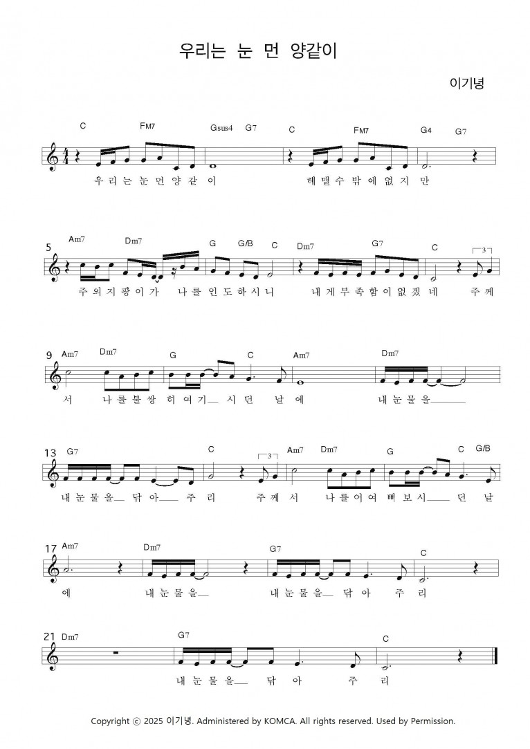 [악보] 우리는 눈 먼 양같이 - 창조의 목적 (잠잠히 주를 바랄 때)