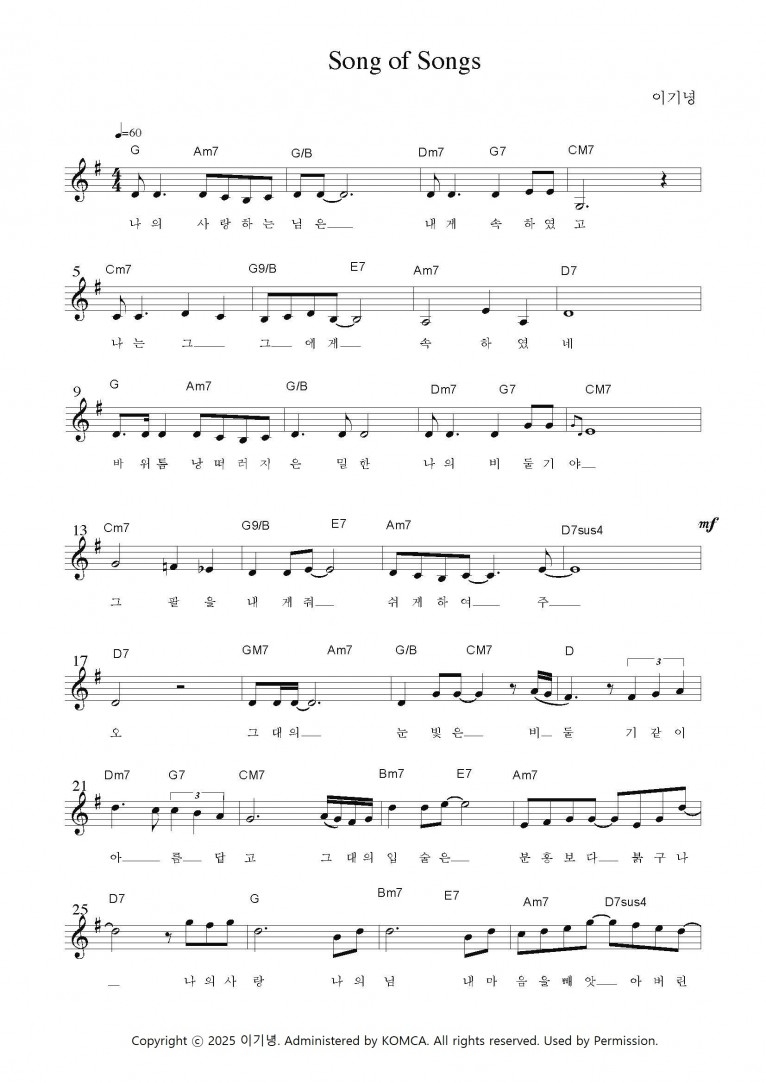 [MV,악보] Song of Songs - 창조의 목적 (잠잠히 주를 바랄 때)