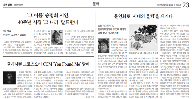 [기사] 클래시컬 크로스오버 CCM ‘You Found Me’ 발매(기독일보)