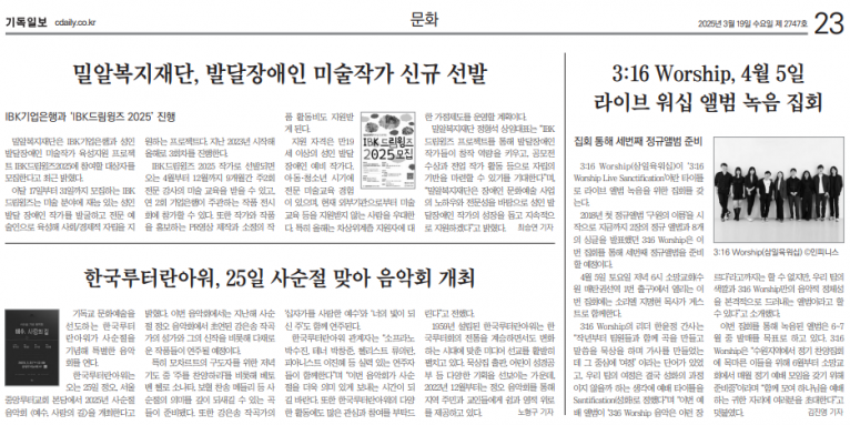 뮤직타임 [기사] 3:16 Worship, 4월 5일 라이브 워십 앨범 녹음 집회(기독일보)