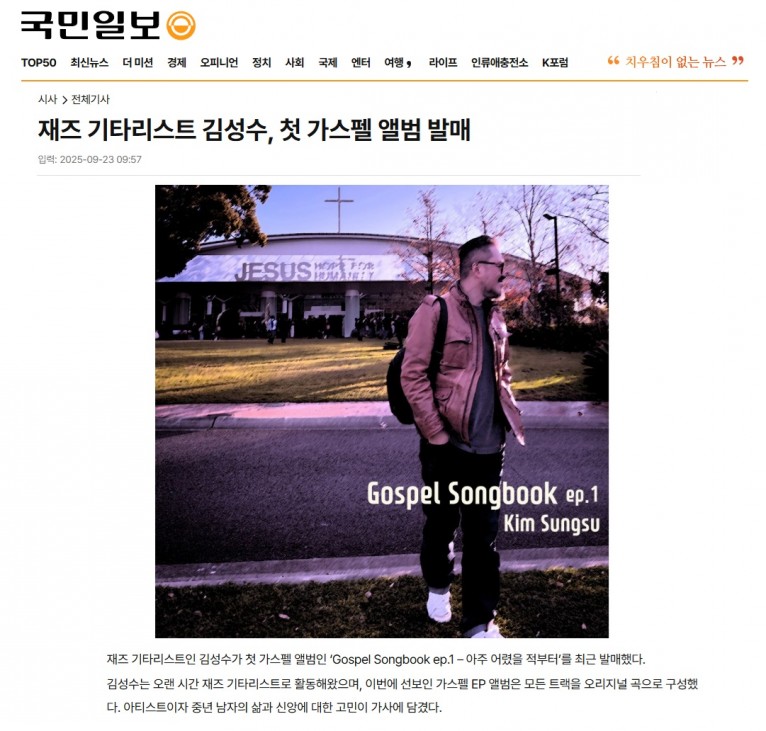 [기사] 재즈 기타리스트 김성수, 첫 가스펠 앨범 발매(국민일보)